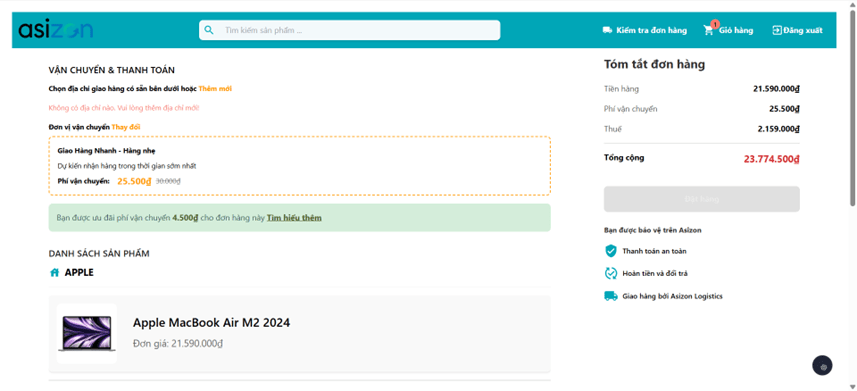 Asizon is a full-featured e-commerce website for electronics, designed to provide users with a seamless online shopping experience. The platform allows users to browse products, add items to a shopping cart, securely authenticate, and manage orders. The project was developed over 2.5 months, from March 1, 2025, to May 15, 2025, following best practices for scalable and maintainable web applications.
